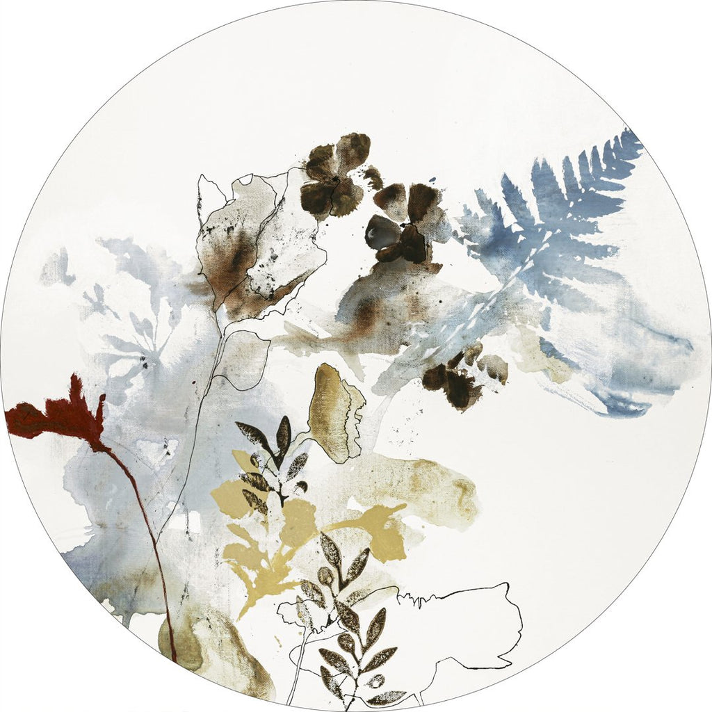 Blomstermotiv udført på kunstnerisk vis med blade og blomster i lyse gyldne, blå og røde farver. Stilen er let og poetisk og vil være med til, at understrege den nordiske og eller kunstneriske stil. Det glade blomstermotiv er let at placere i indretningen og gerne i selskab med Weightless 2. Værket er designet af Art Copenhagens kunstner Freja.