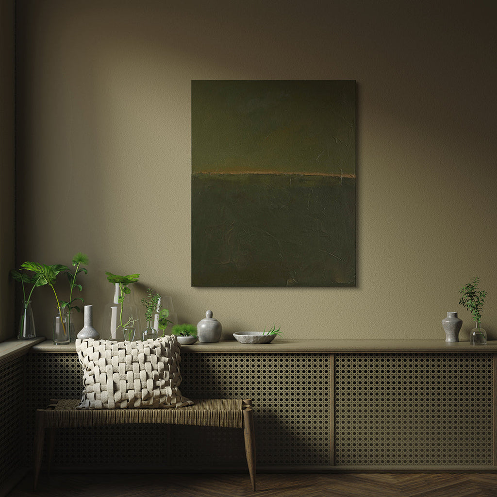 Skønt maleri, som får liv og kraft fra strukturen i baggrunden samt nuanceringen i farverne. Tidsrigtigt og med stor trendappeal, vil dette maleri klæde enhver moderne indretning.