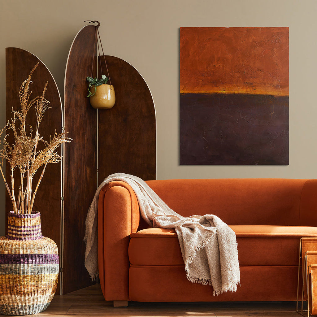 Skønt maleri, som får liv og kraft fra strukturen i baggrunden samt nuanceringen i farverne. Tidsrigtigt og med stor trendappeal, vil dette maleri klæde enhver moderne indretning.