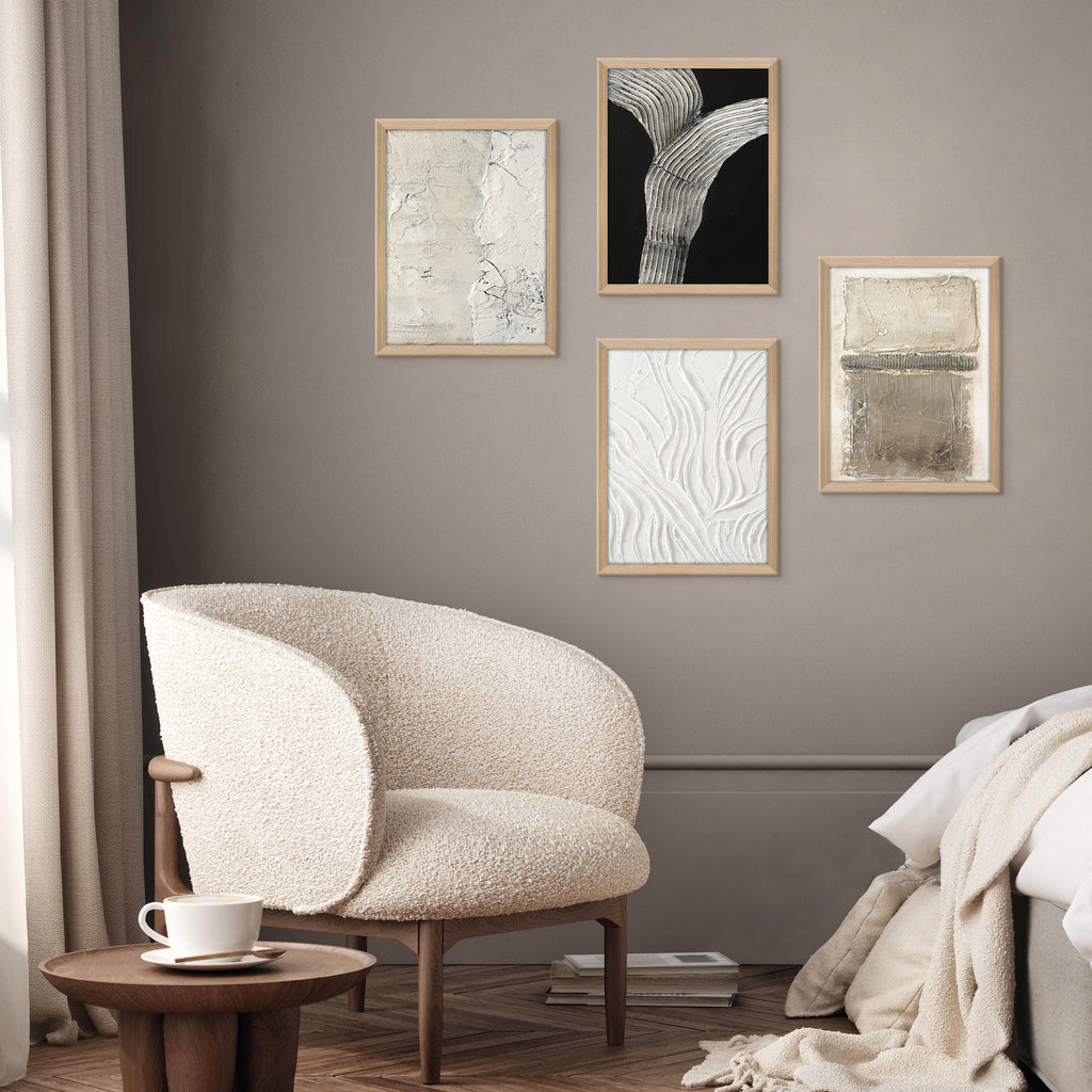 Nordic Art Collection er en serie af omhyggeligt udvalgte malerier designet af kunstneren Freja i en rå og enkel stil, hvor hver penselstrøg er tydeligt og skaber en teksturrig overflade. Denne tekstur bringer ikke kun liv til værket, men tilfører også dybde. Kollektionen giver dig mulighed for selv at skabe dit helt egent udtryk og derigennem opnå en unik og fuldendt stil. Freja henter sin inspiration fra den nordiske natur, med dens naturlige farver, klipper, sand, lys og skygger, som alle afspejles i maleriernes skulpturelle og teksturerede udtryk.