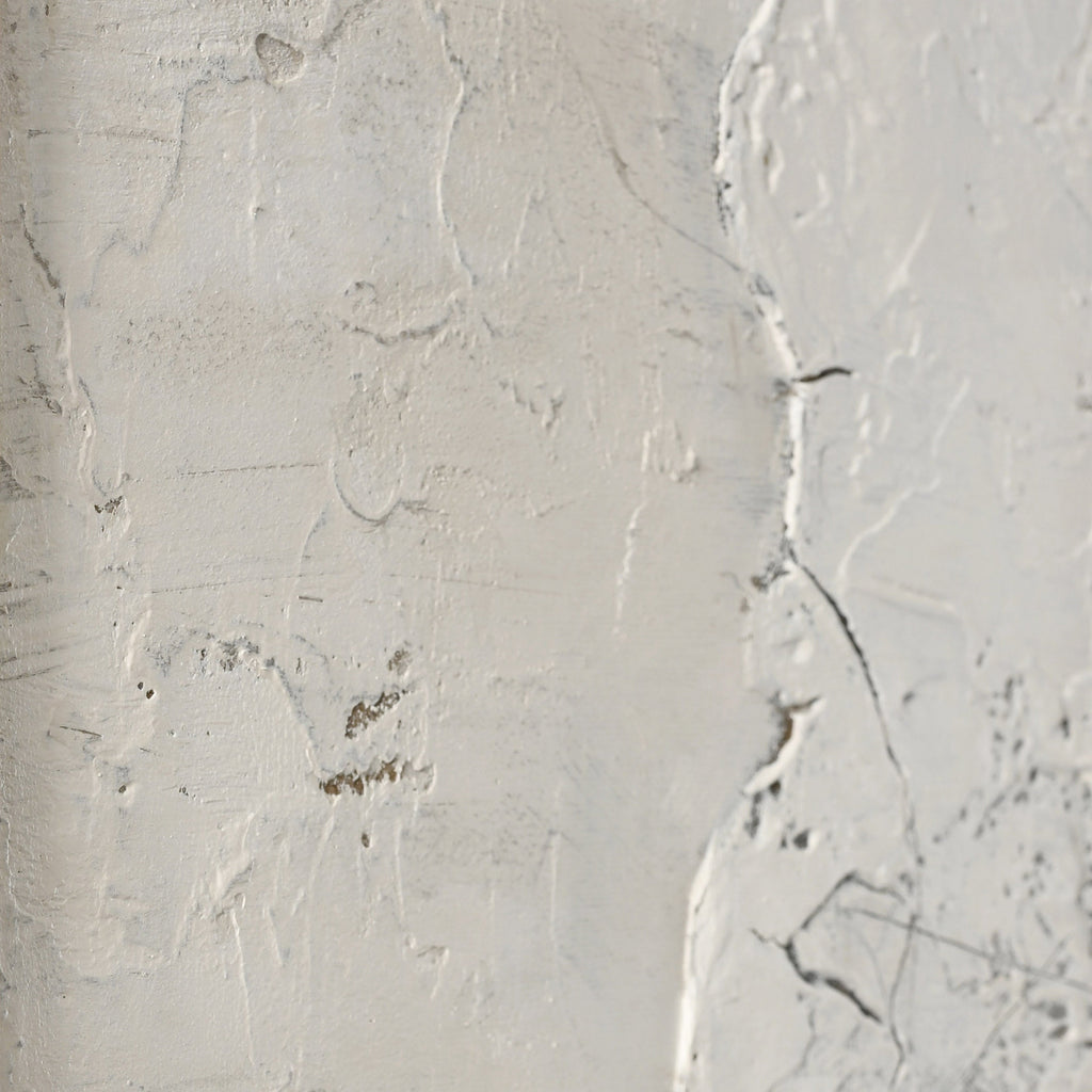Maleriet White Surface er designet af vores dygtige kunstner Freja, som siger om dette unikke maleri: „Kontraster, brud og revner i klipperne - kommer her til udtryk, hvor linjer, farver og form definerer det skandinaviske udtryk.“