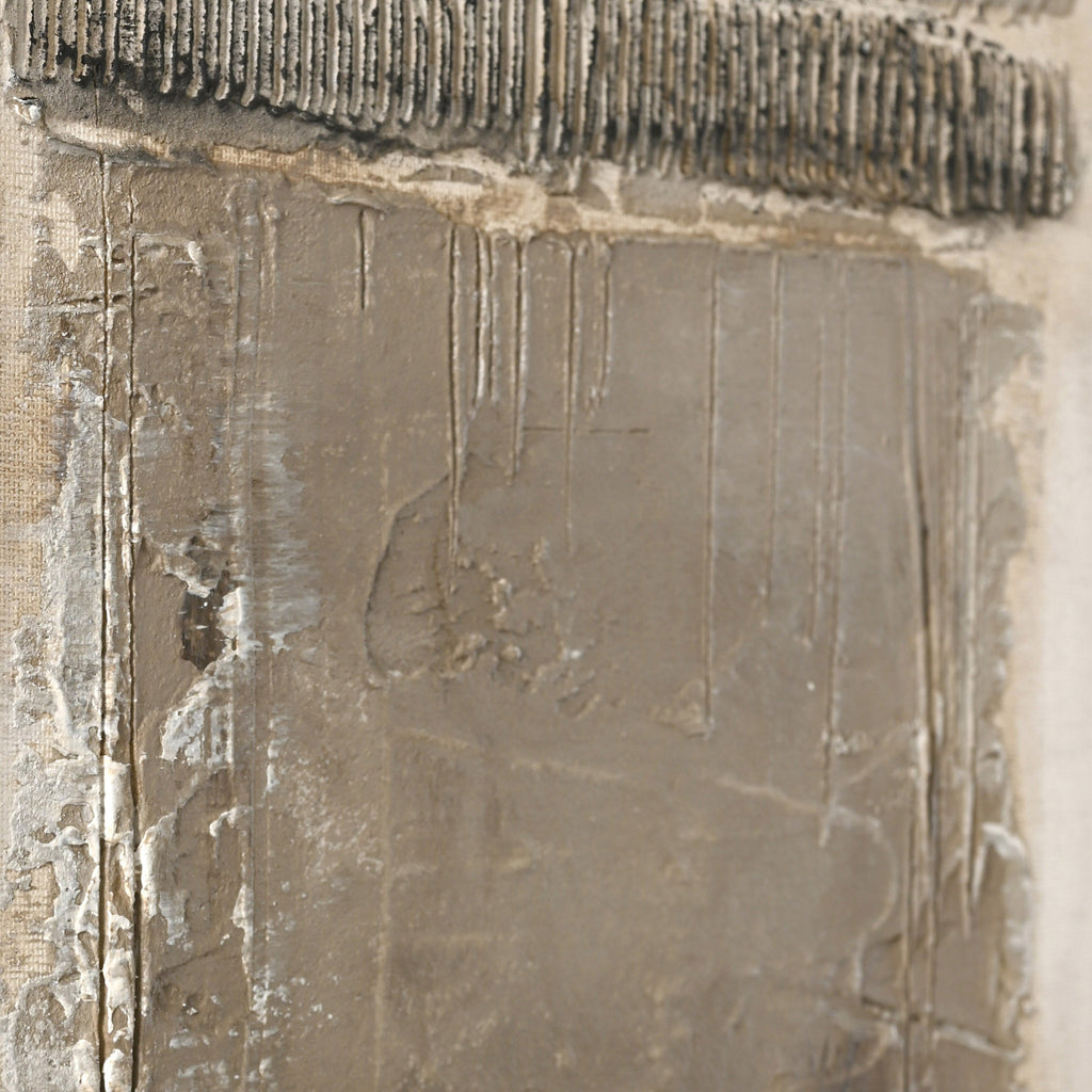 Maleriet Art Structure 1 er designet af vores dygtige kunstner Freja, som siger om dette unikke maleri: „Et lille ikon, som er udsprunget af farvepaletten i den nordiske stil og tilsat et råt og forrevet udtryk.“